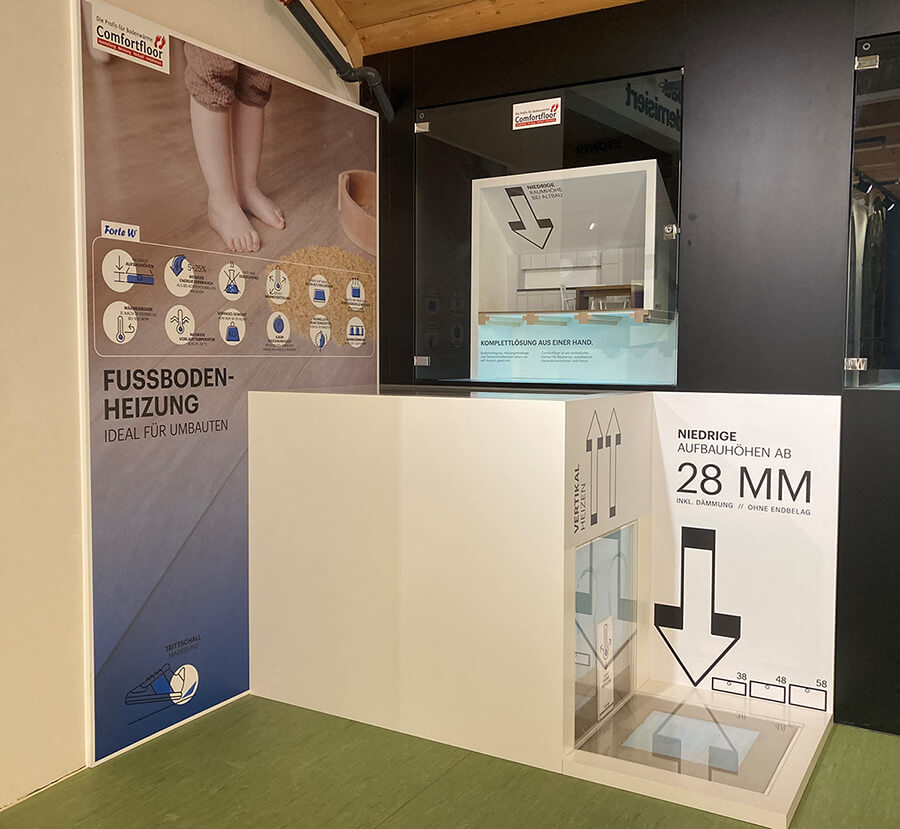 Mit unserer neuen Ausstellung in der Umwelt Arena erhalten Sie eine zusätzliche Möglichkeit die Produkte von Comfortfloor “live” zu erleben. Sie finden unsere Ausstellung im 2. Obergeschoss im Bereich “Bauen & Modernisieren”. Wir freuen uns auf Ihren Besuch.