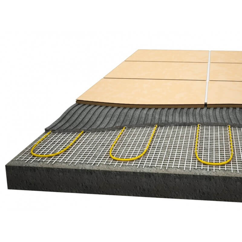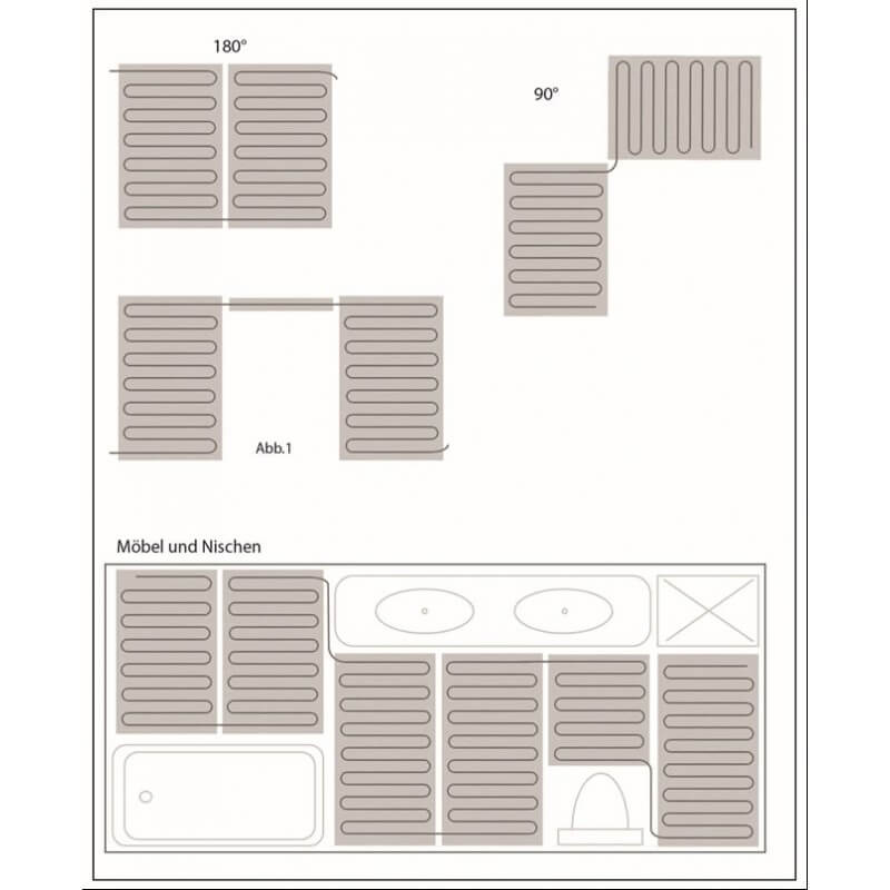 - Eignet sich für Bodentemperierungen unter beinahe alle verklebten Fliesen-, Naturstein-, Parkett-, Laminat- und Teppich-Bodenbelägen