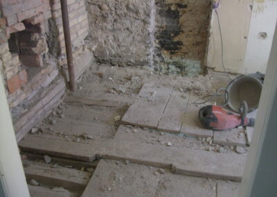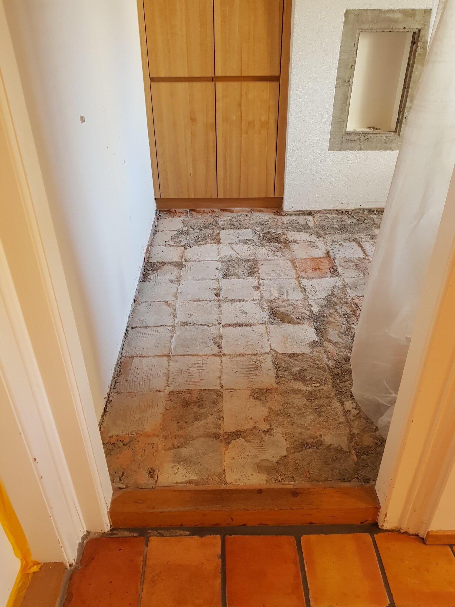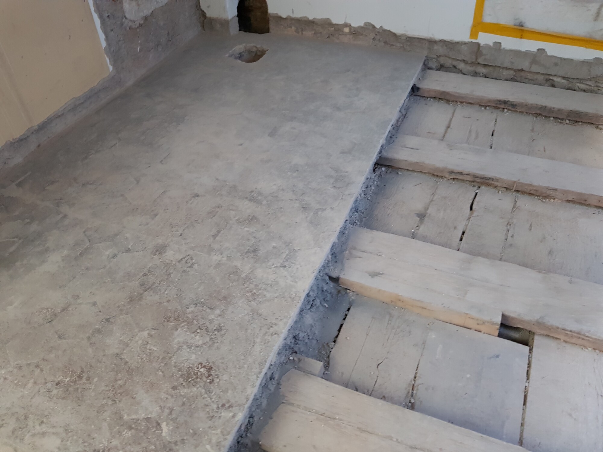 Unterschiedlichste Untergründe: Holz, Beton, Unterlagsboden, Plattenböden, Holzriemen. Schwierige Zufahrt.