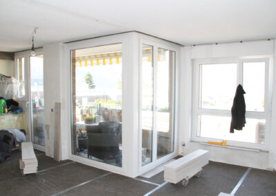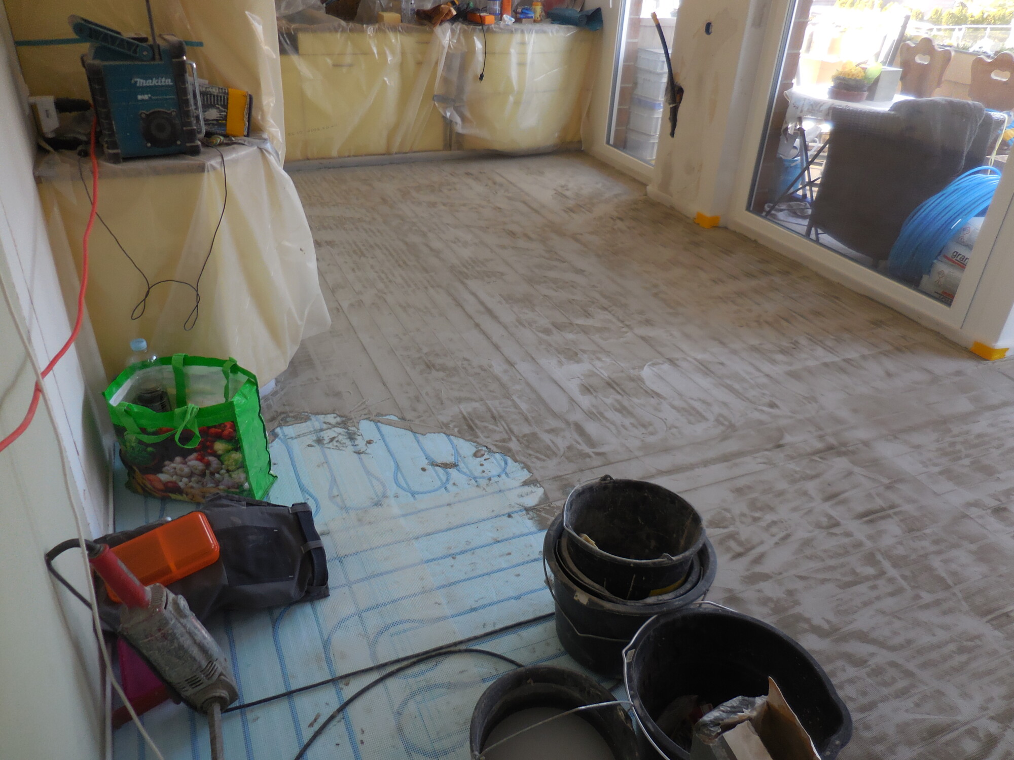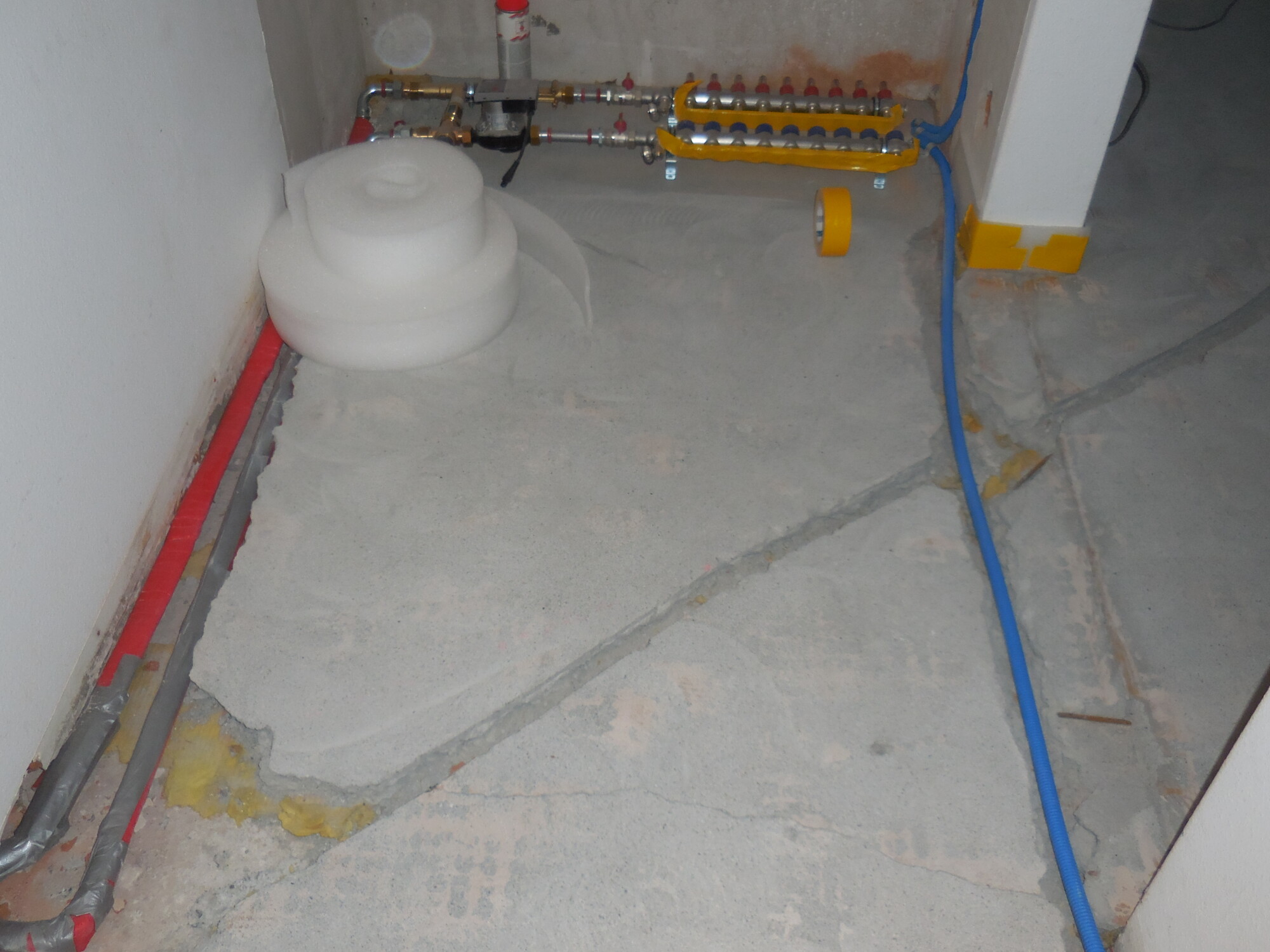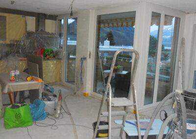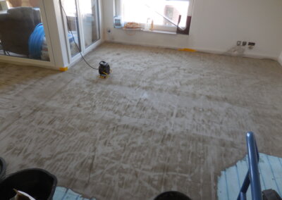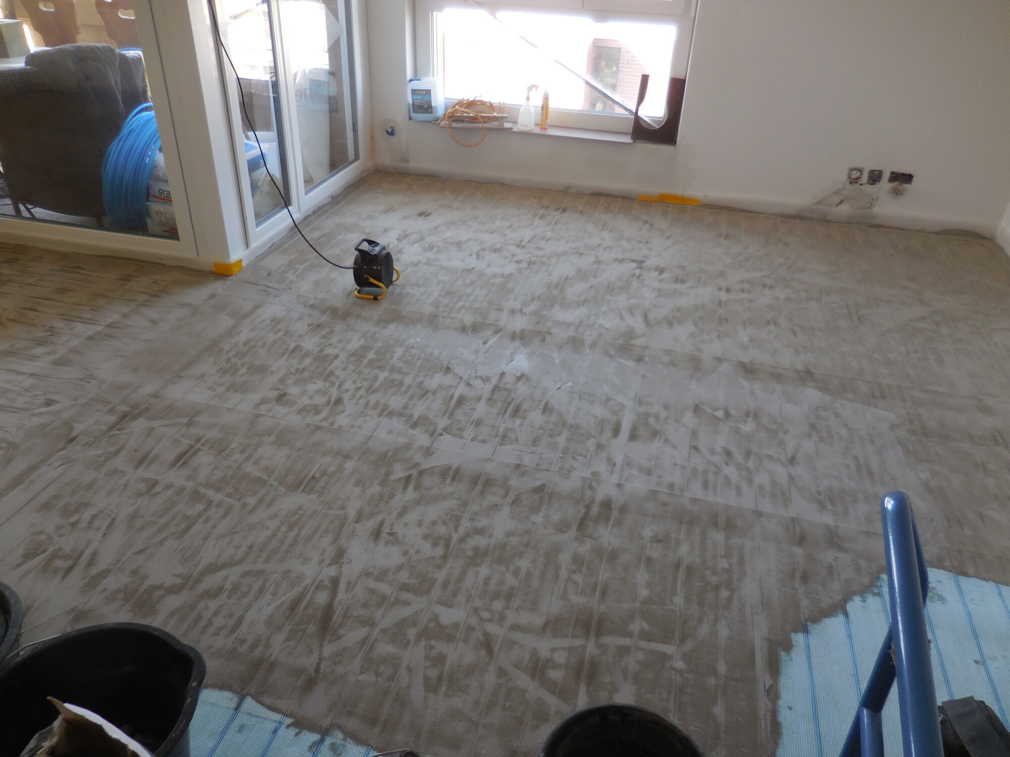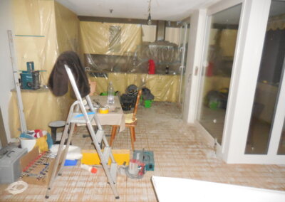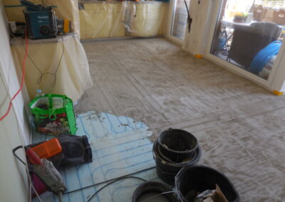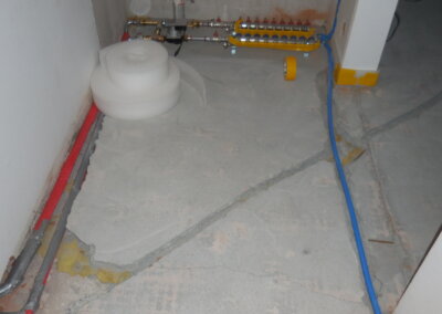 Nachträglicher Einbau einer Bodenheizung in Wohnungen eines Wohnblocks.