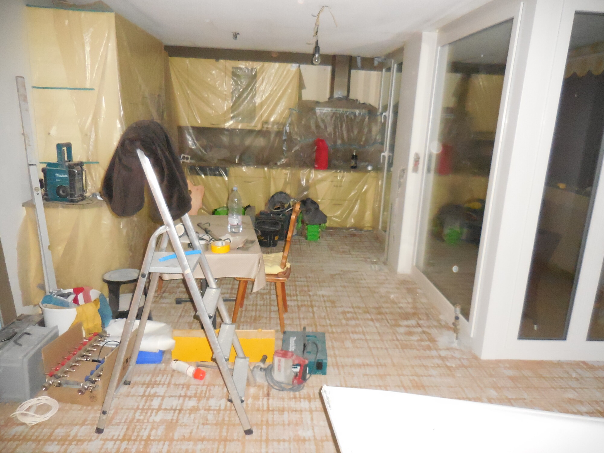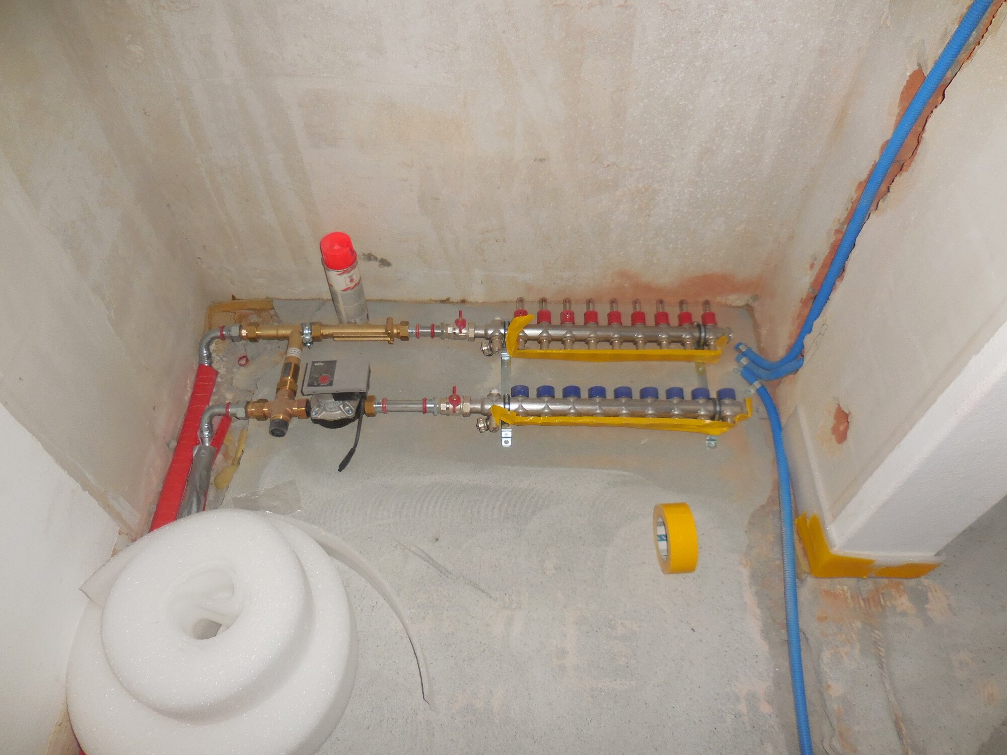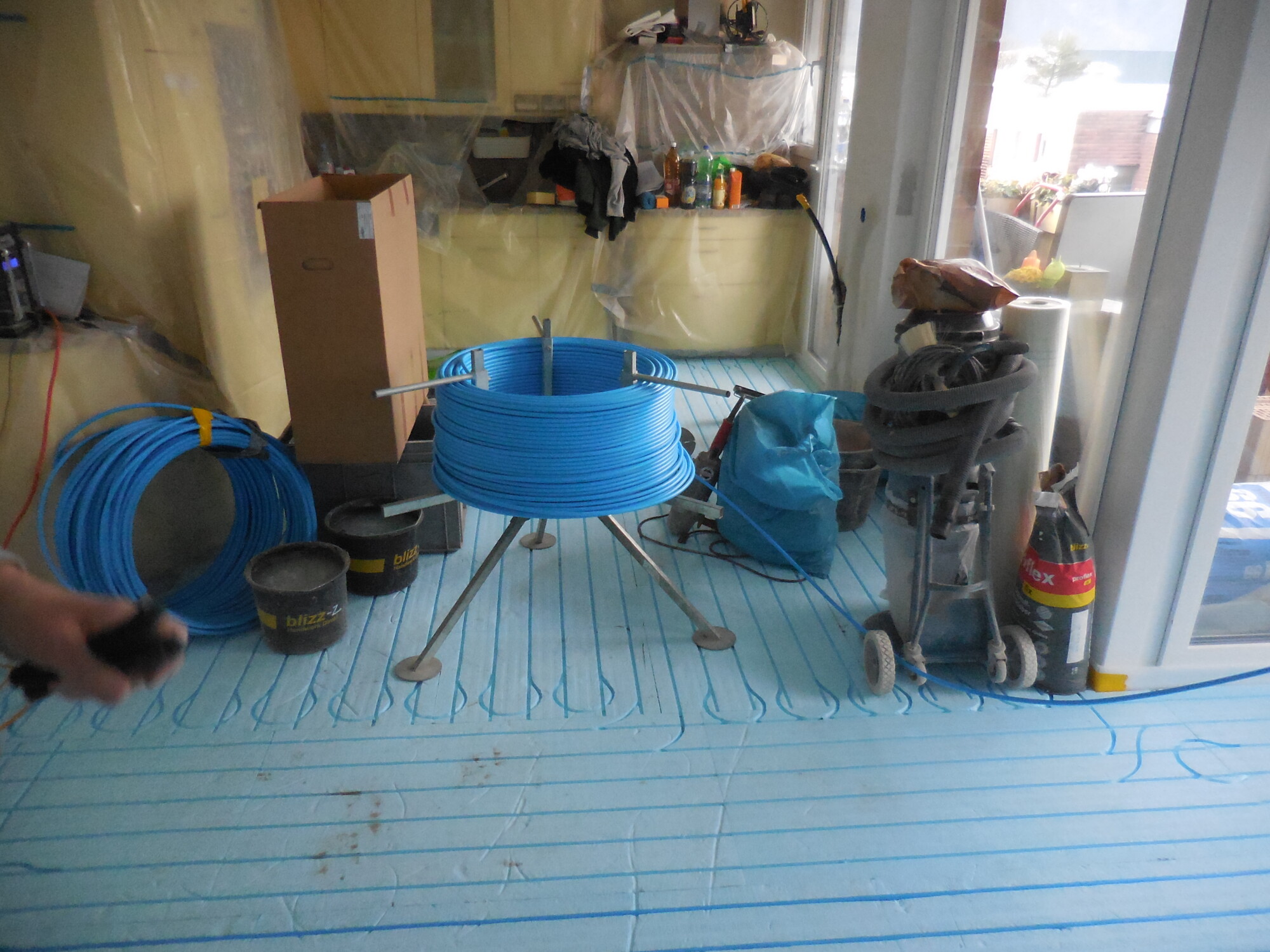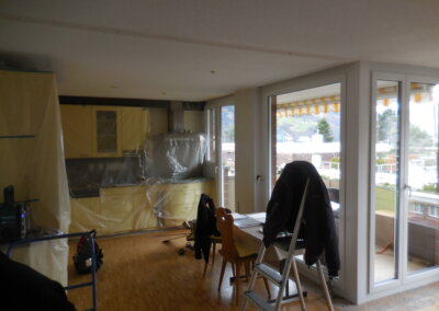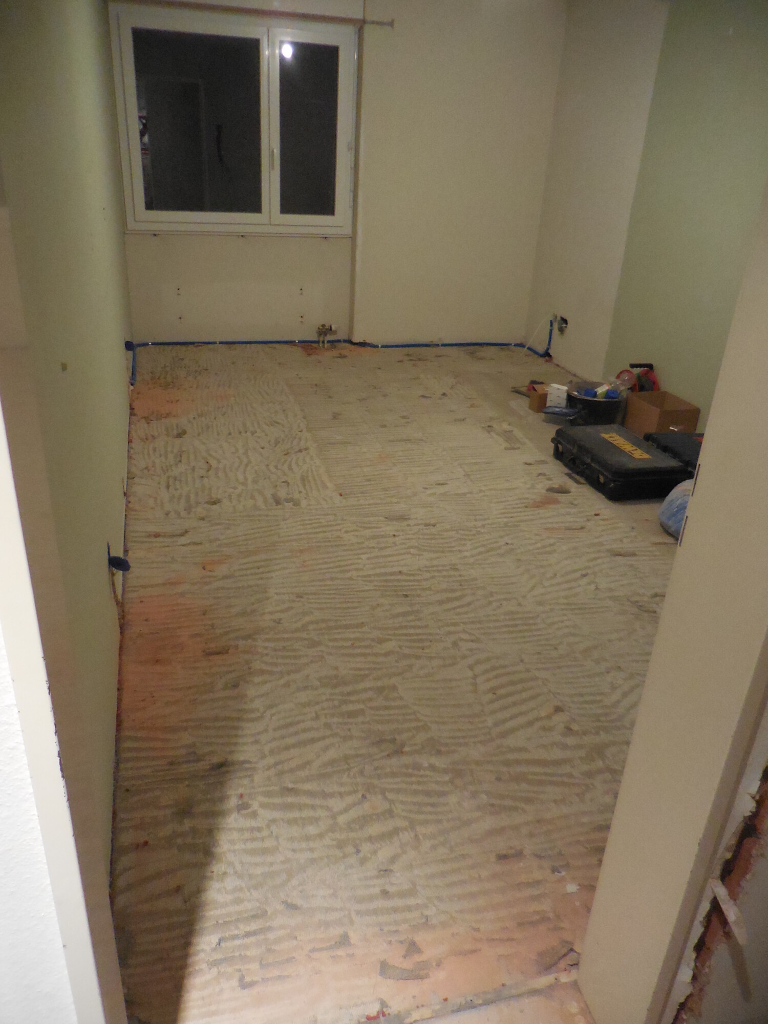 Nachträglicher Einbau einer Bodenheizung in Wohnungen eines Wohnblocks.