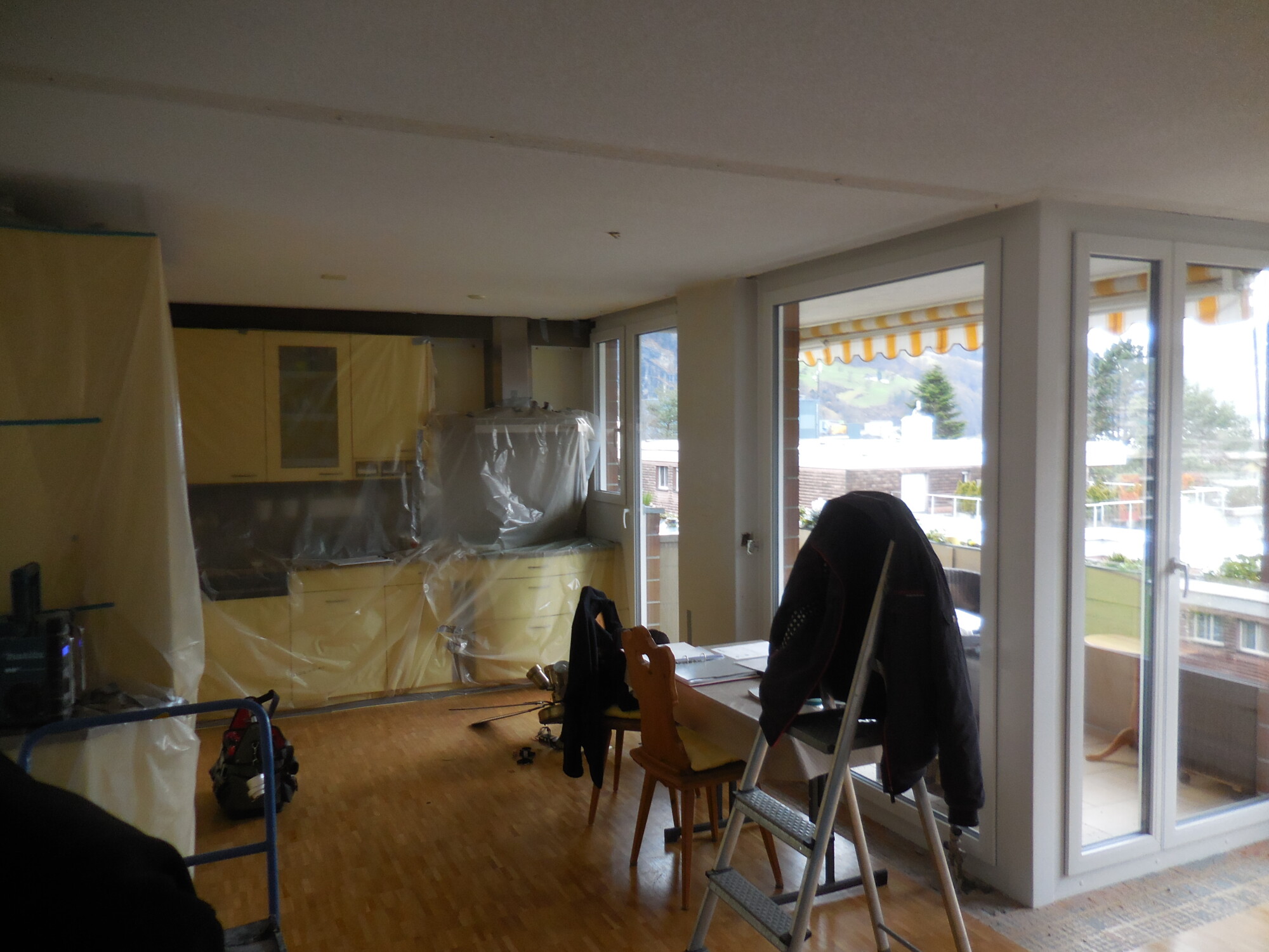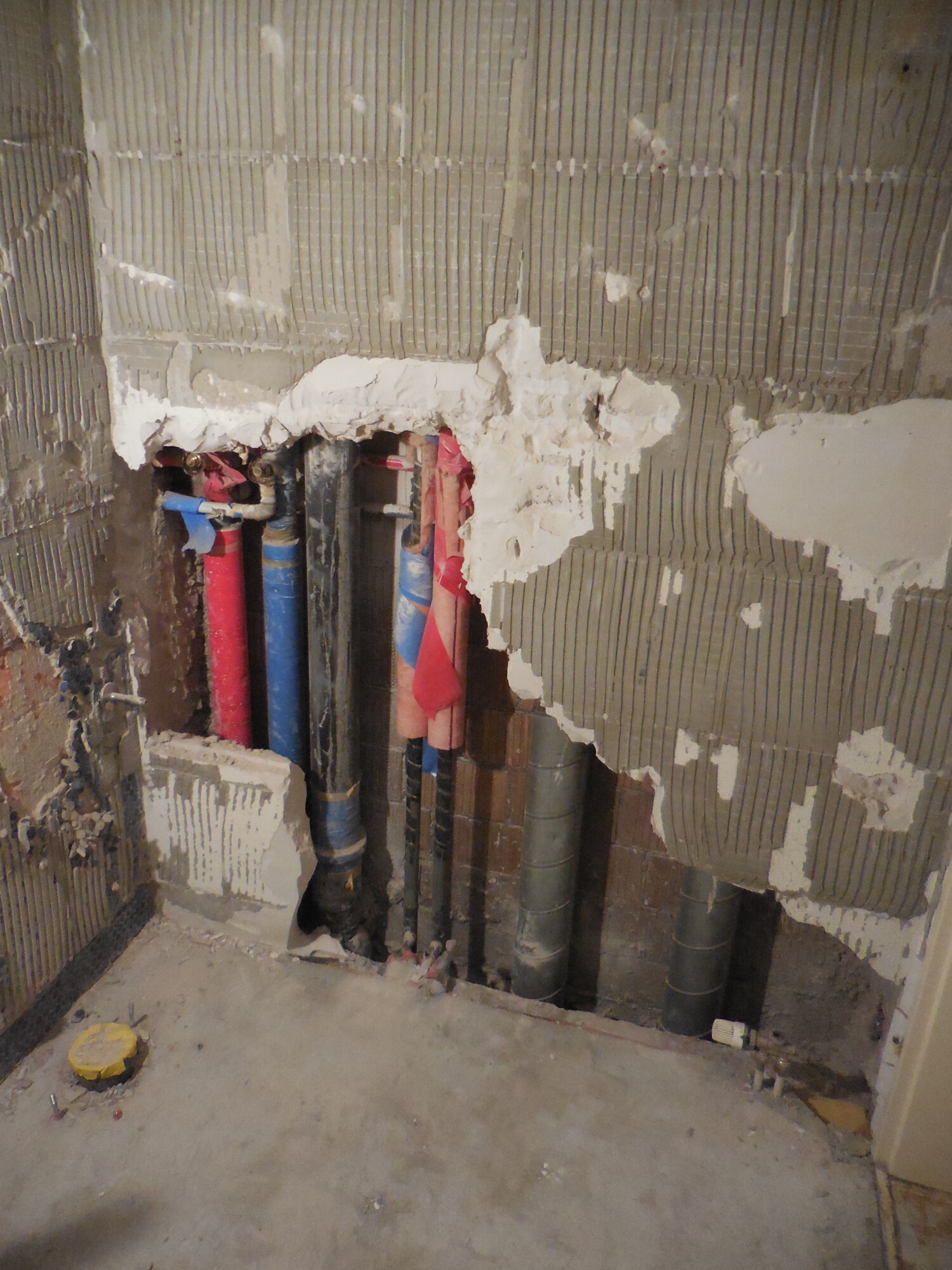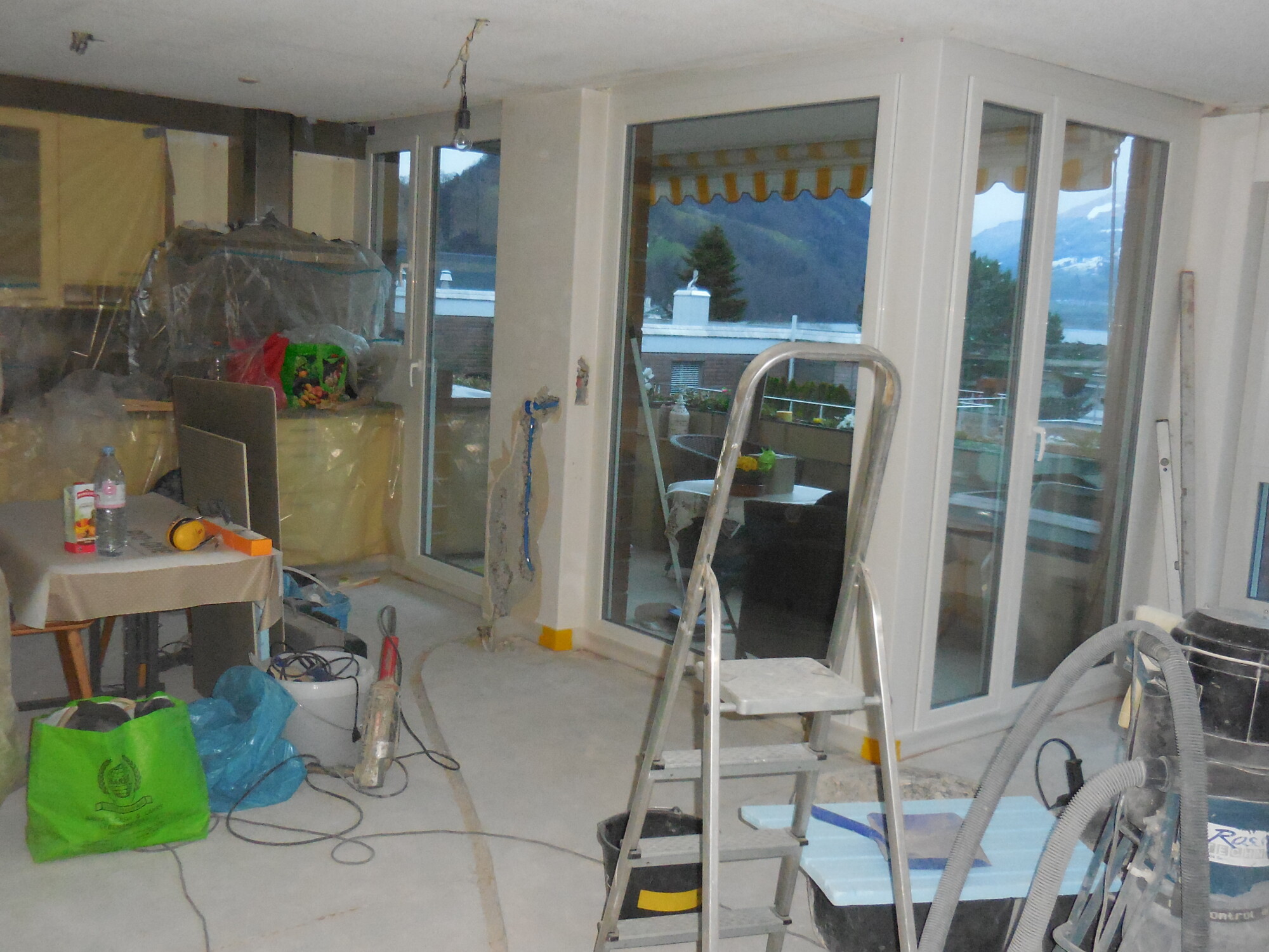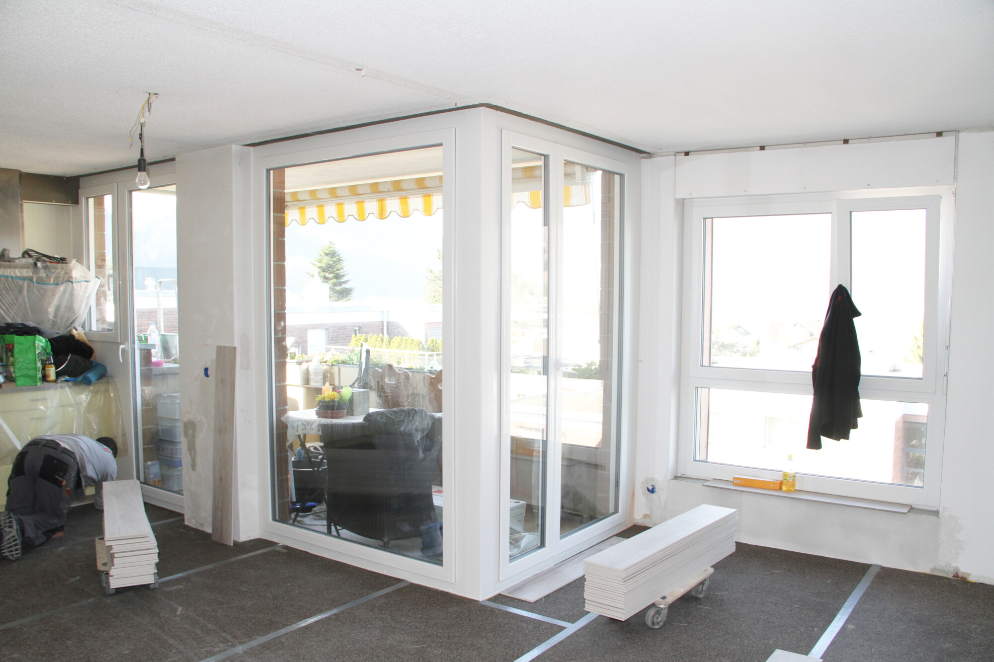 Nachträglicher Einbau einer Bodenheizung in Wohnungen eines Wohnblocks.