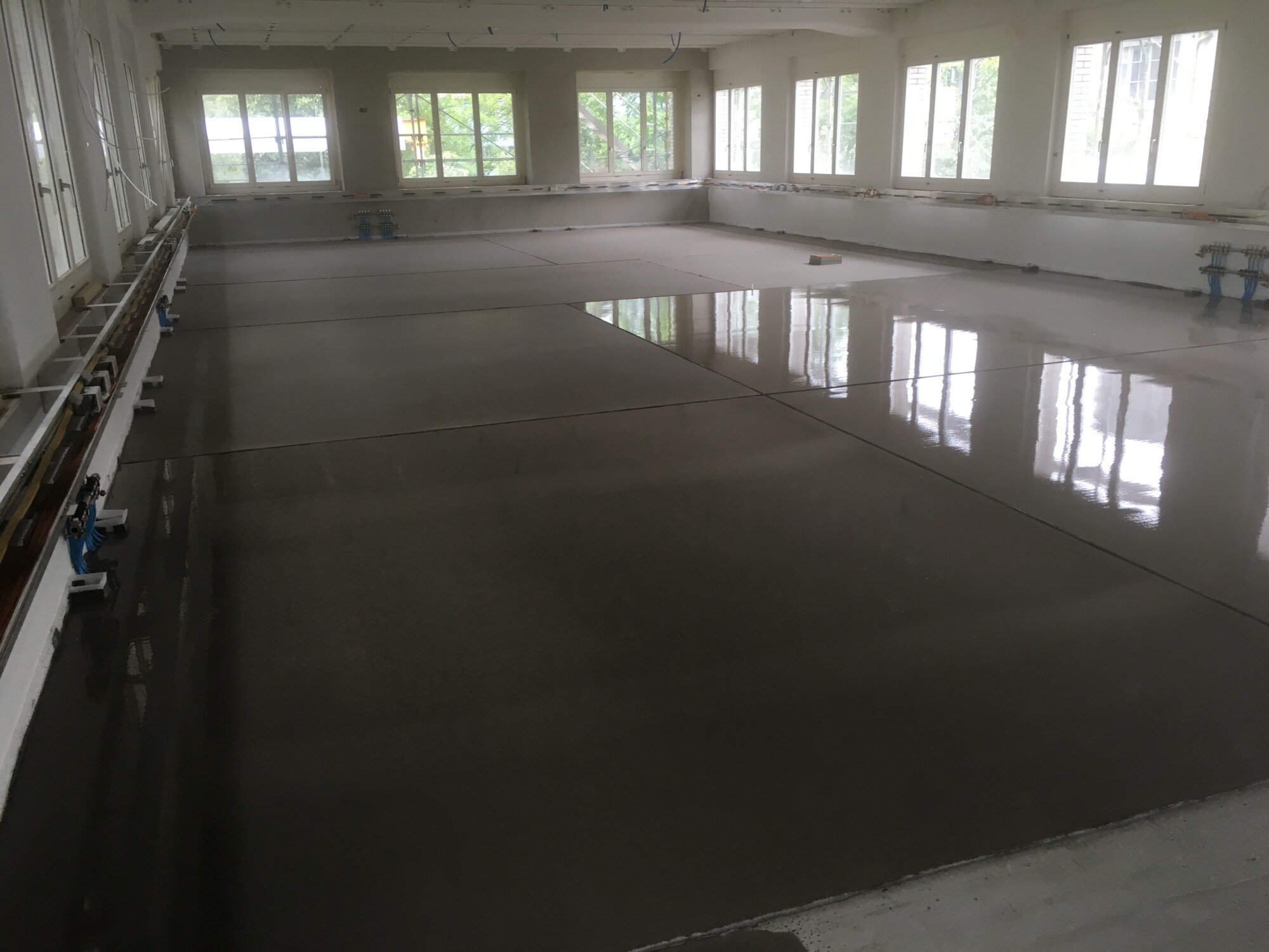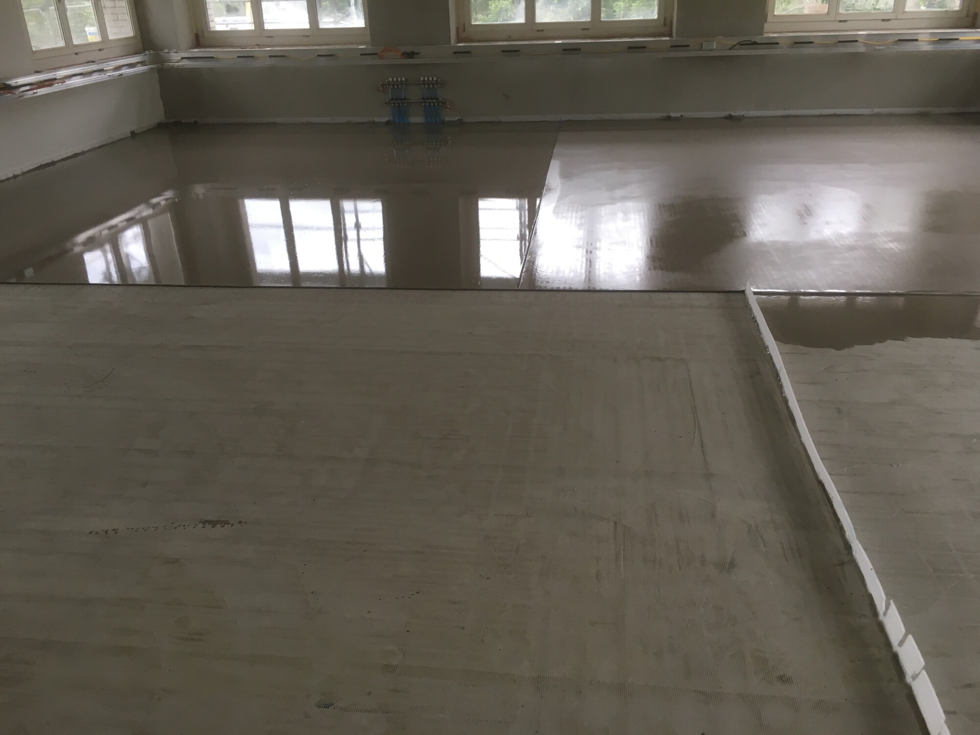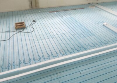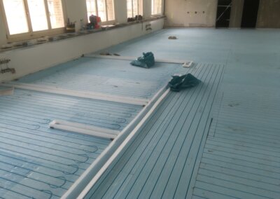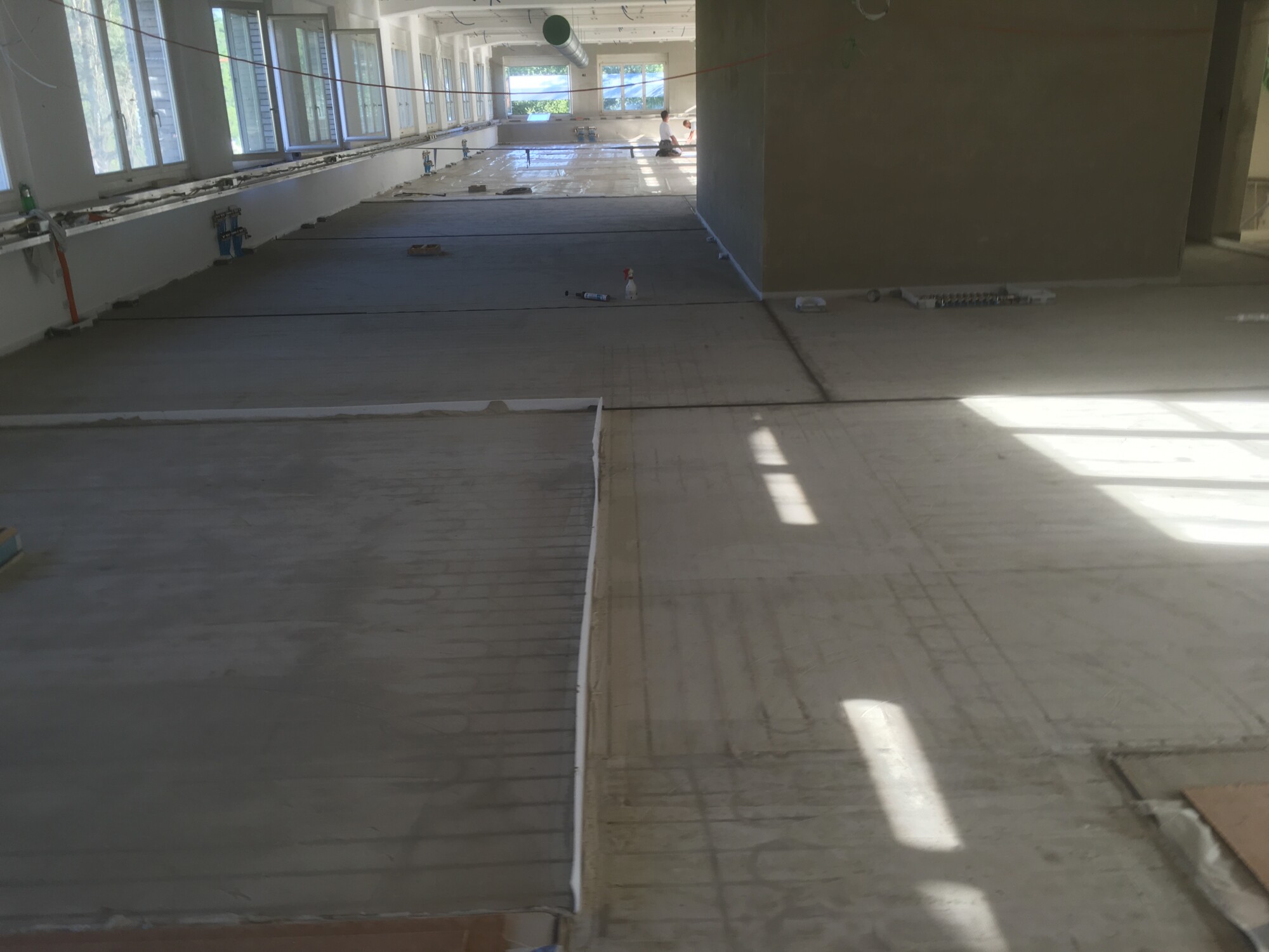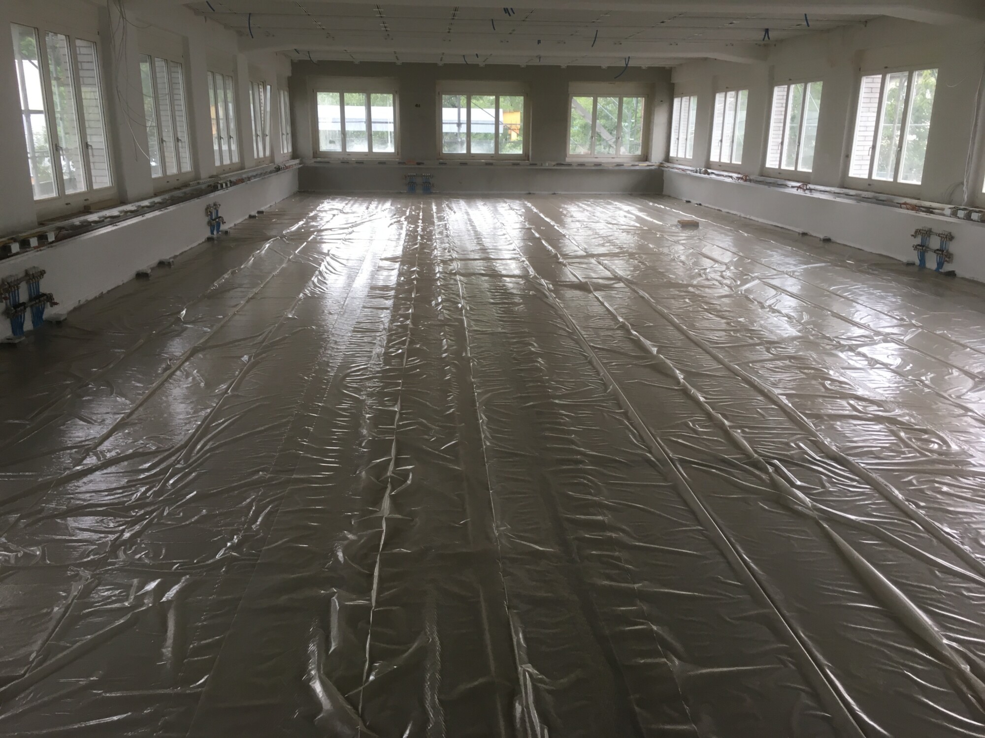 Die grossflächige Bodenheizungsinstallation über 600 Quadratmeter musste in Etappen abgewickelt werden. Zudem wurde ein hoher Isolationswert gefordert, welchen wir mit einem mehrschichtigen System bewerkstelligen konnten.