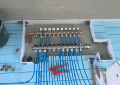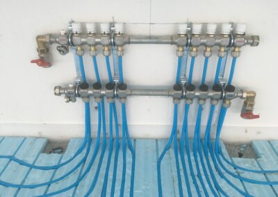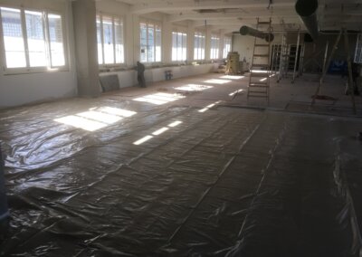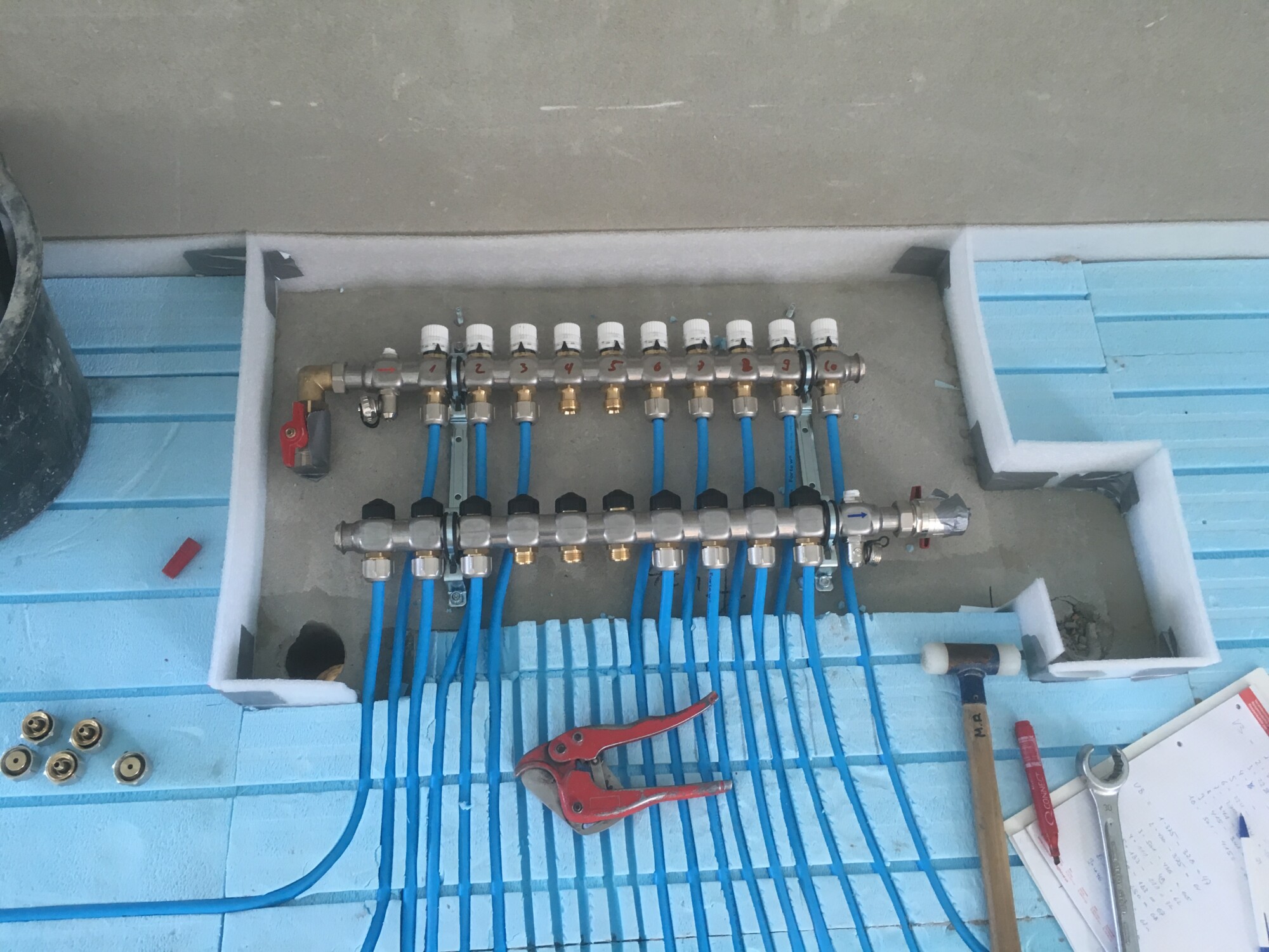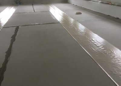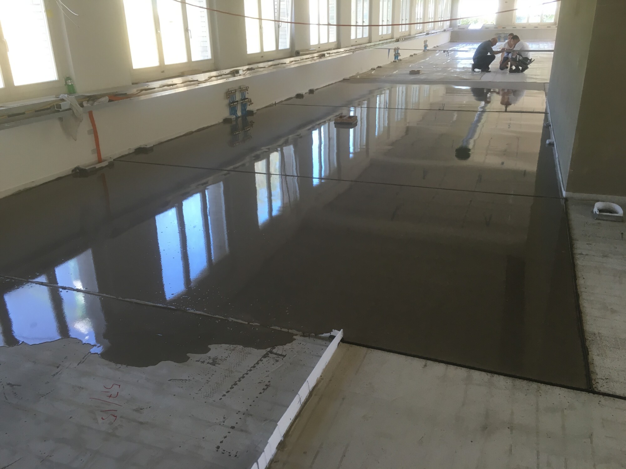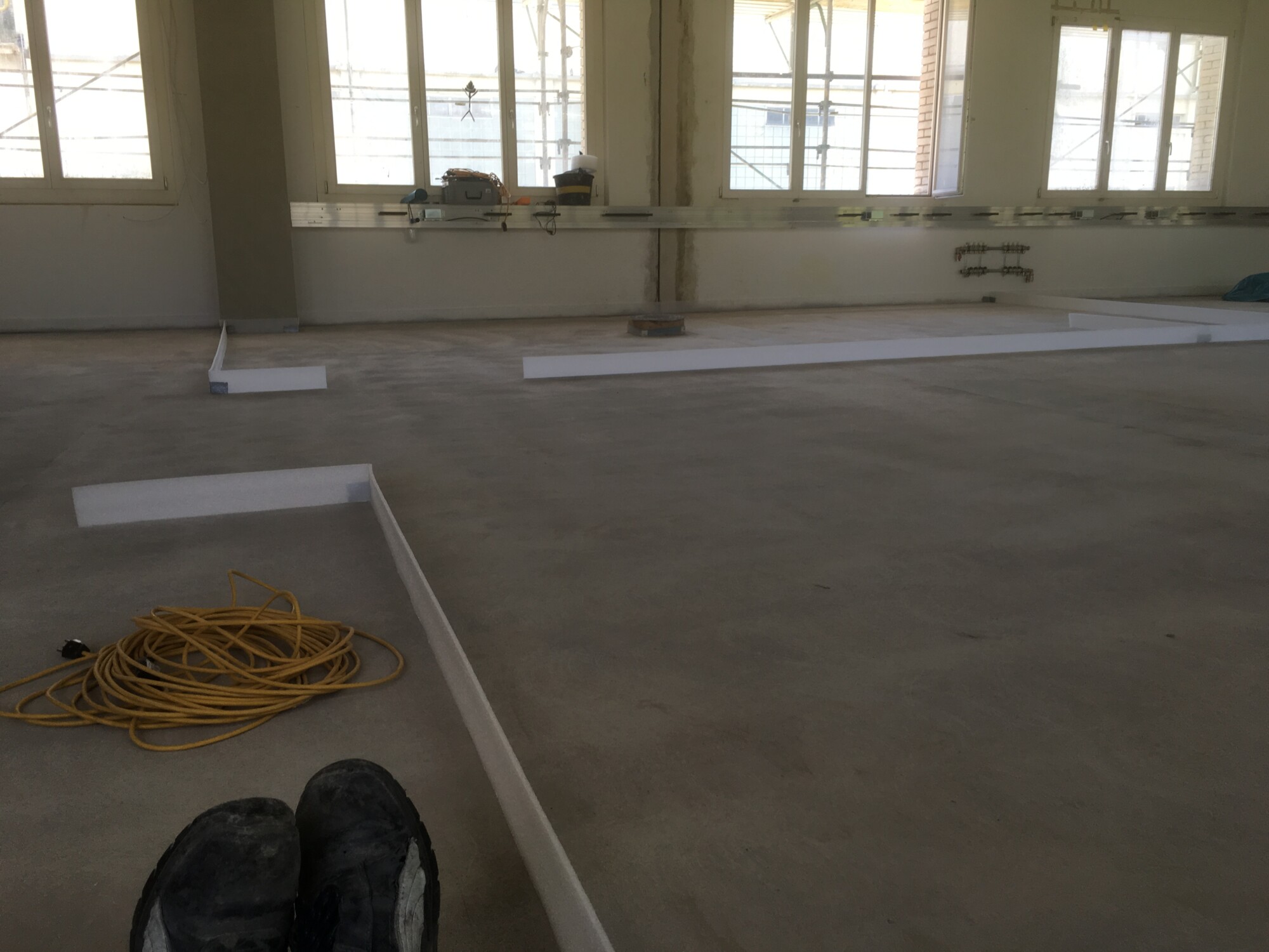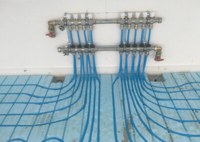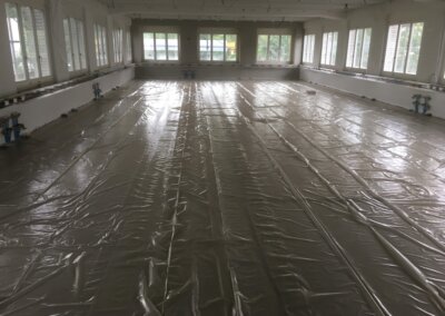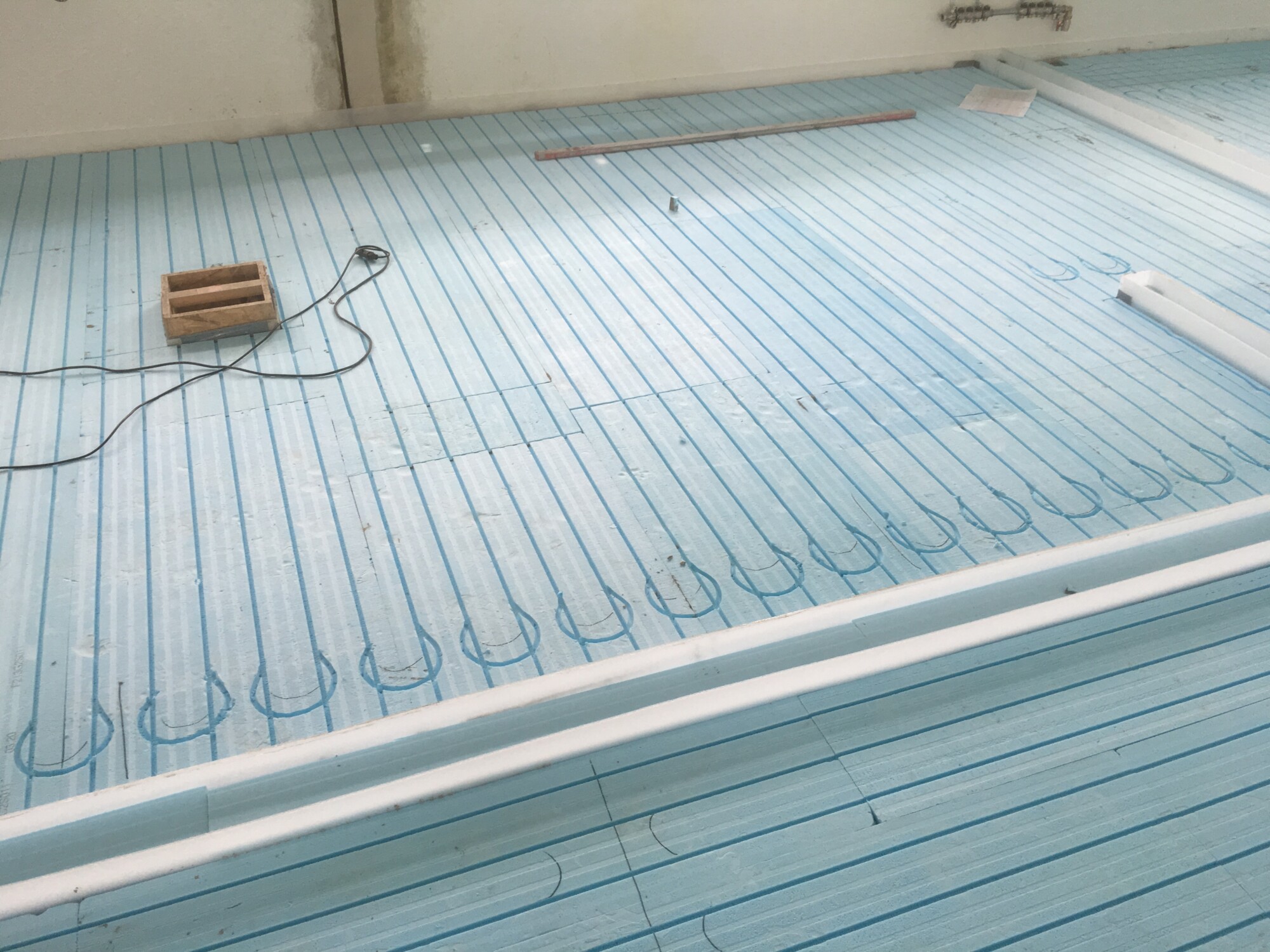 Die grossflächige Bodenheizungsinstallation über 600 Quadratmeter musste in Etappen abgewickelt werden. Zudem wurde ein hoher Isolationswert gefordert, welchen wir mit einem mehrschichtigen System bewerkstelligen konnten.